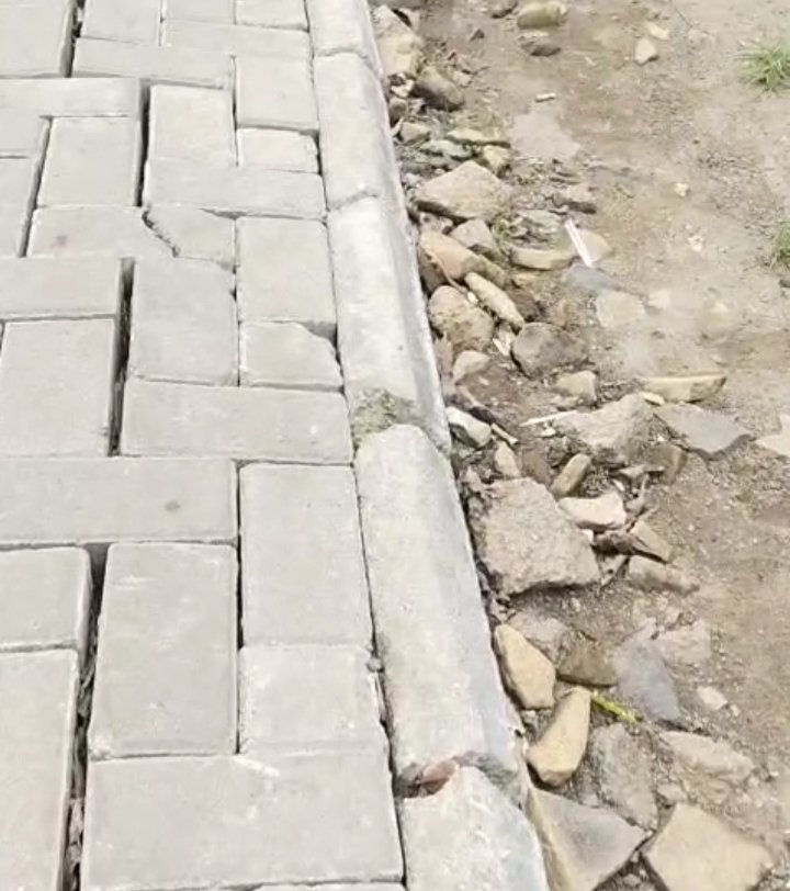 Namun fakta lapangan menunjukkan hasil pekerjaan yang tidak sebanding dengan nilai anggaran. Secara visual, paving terlihat mudah retak, sudut-sudut pecah, serta pemasangan yang tidak presisi, yang semakin memperkuat dugaan lemahnya kualitas material dan metode pelaksanaan pekerjaan.
