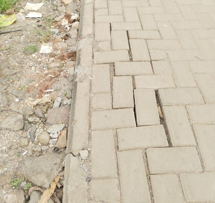 Kondisi tersebut mengindikasikan adanya kemungkinan dasar atau lapisan bawah (bedding) tidak dipersiapkan secara optimal, termasuk dugaan tidak dilakukannya pengerasan atau pemadatan yang memadai sebelum pemasangan paving.