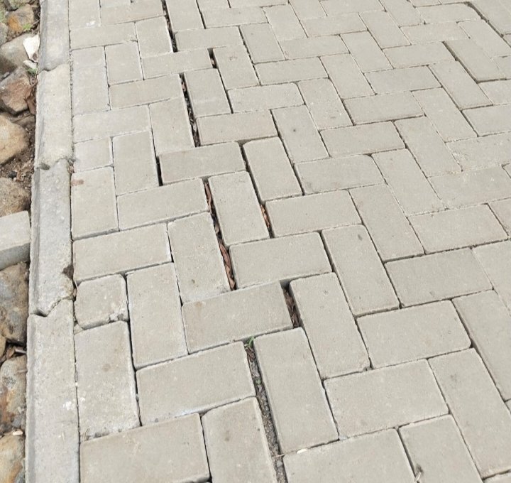 Selain itu, pola pemasangan terlihat renggang dan tidak rapi, dengan celah antar paving yang tidak seragam, meskipun proyek tersebut belum lama dinyatakan selesai.