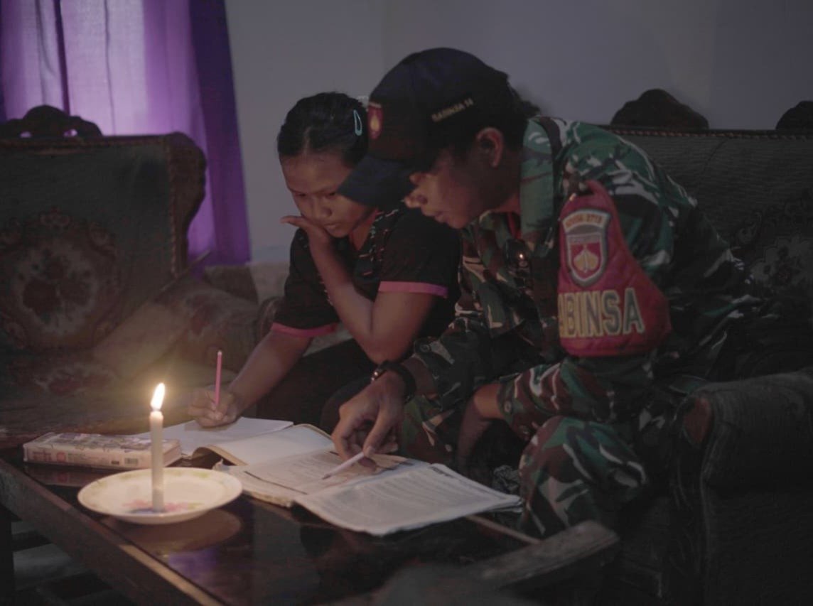 Di sudut ruangan, cucunya, Nayla (11), duduk dengan buku pelajaran terbuka di pangkuan. Selama ini, ia terbiasa belajar dengan penerangan seadanya. Sering kali waktu belajarnya terpotong karena cahaya tak lagi cukup membantu mata kecilnya membaca.