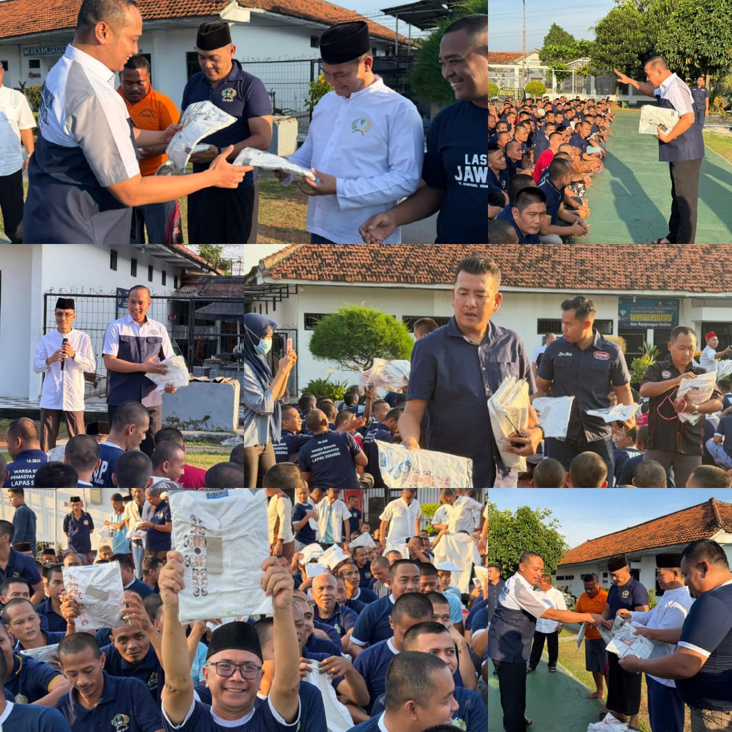 “Dalam kegiatan Lapas Serang berbagi ini, seluruh warga binaan mendapatkan baju lebaran berupa baju Koko secara antusias dan penuh rasa syukur, ” jelas Kalapas Serang Riko Stiven.