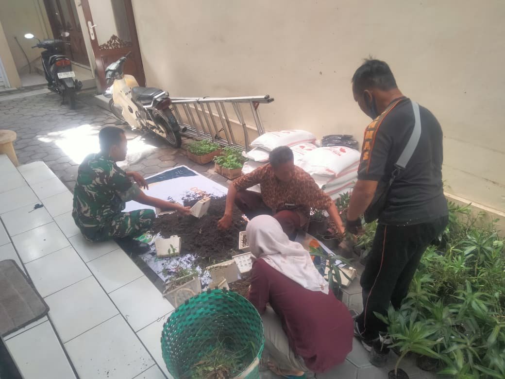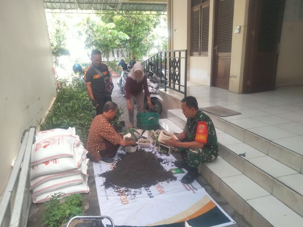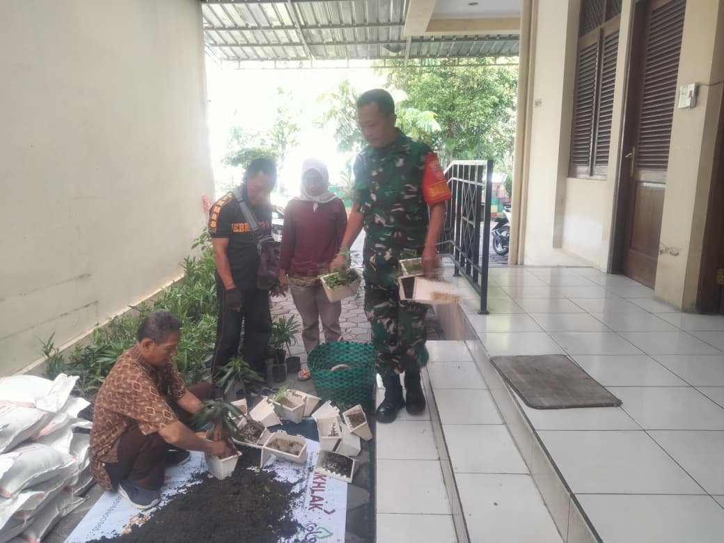 Manfaatkan Lahan Sempit, Babinsa Purwodiningratan Hijaukan Lingkungan Dengan Tanaman Polybag