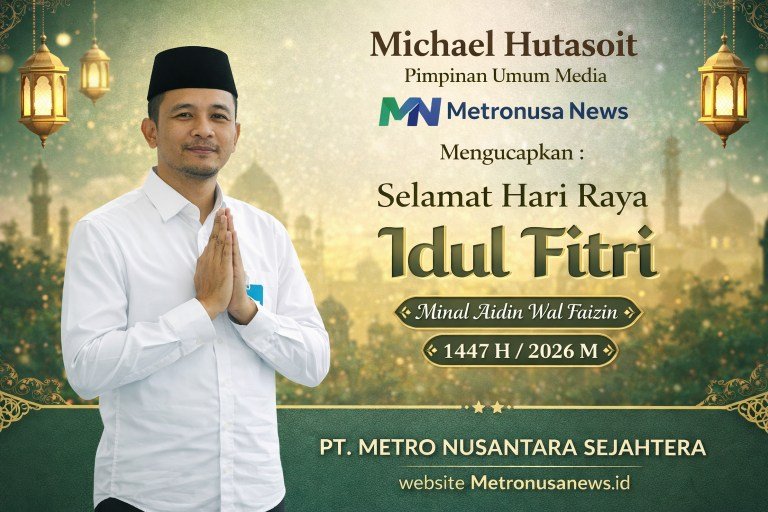 Pimpinan Umum Media Metronusa News, Michael Hutasoit, menyampaikan ucapan selamat kepada seluruh masyarakat Indonesia, khususnya umat Muslim yang merayakan.