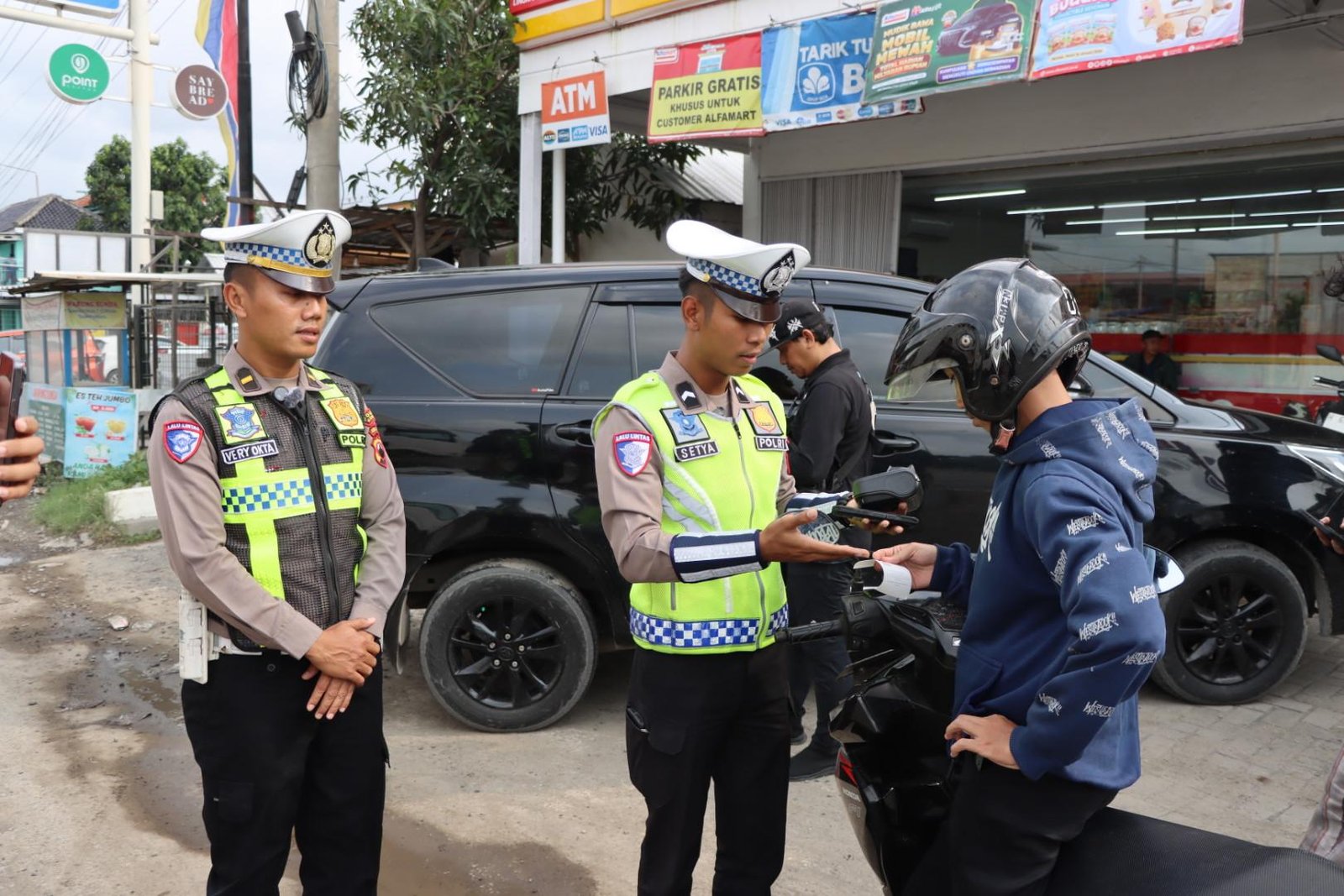 Selain melawan arus, petugas juga menindak pengendara yang tidak menggunakan helm SNI serta yang berboncengan lebih dari dua orang. Seluruh pelanggaran ini didokumentasikan menggunakan Electronic Traffic Law Enforcement (ETLE) Mobile melalui kamera handheld.
