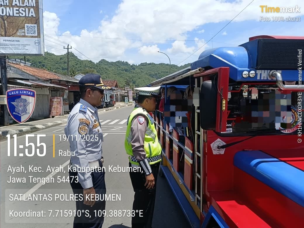 Metronusa News, Kebumen | Operasi Zebra Candi 2025 kembali menyasar pelanggaran yang berpotensi membahayakan keselamatan pengguna jalan. Pada Rabu, 19 November 2025, personel Satlantas Polres Kebumen menegur sebuah kendaraan odong-odong yang beroperasi di jalur umum wilayah perbatasan Kebumen–Cilacap, tepatnya di Kecamatan Ayah.
