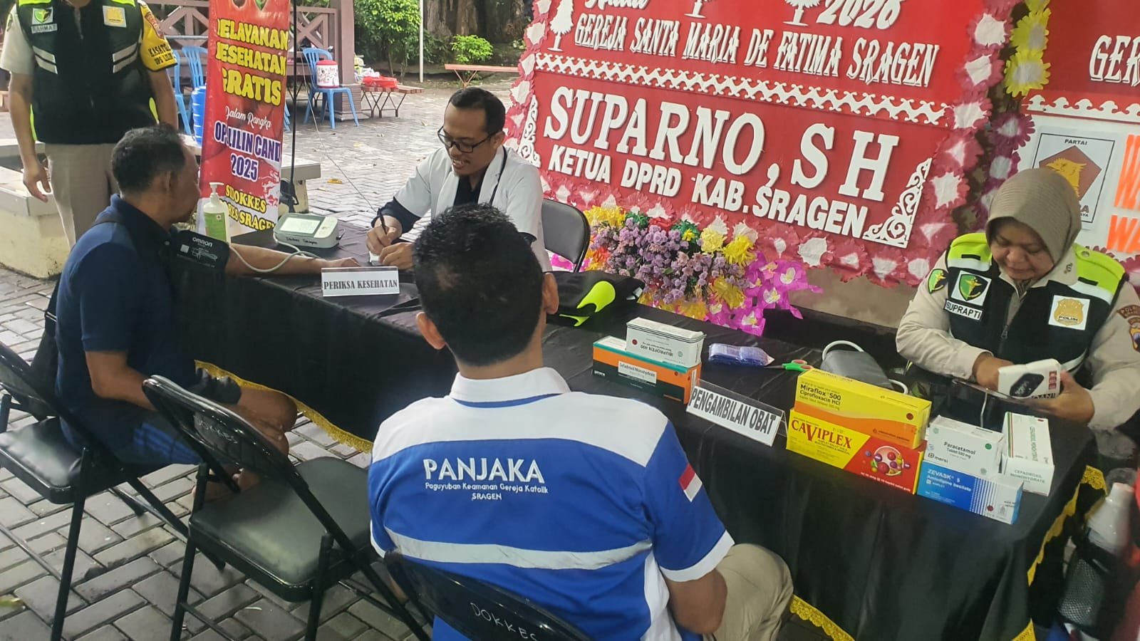 Sementara itu, Panitia Gereja Katolik Santa Maria, Ngajiyo, menyampaikan apresiasi dan ucapan terima kasih kepada Polres Sragen atas perhatian dan pelayanan kesehatan yang diberikan kepada jemaat.