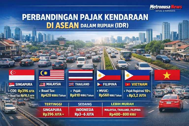 Jika dikonversi ke Rupiah, Singapura menjadi negara dengan biaya kepemilikan kendaraan tertinggi di ASEAN, disusul Indonesia dalam kategori pajak tahunan berbasis nilai kendaraan. Sementara Malaysia, Thailand, dan Filipina relatif lebih terjangkau dari sisi pajak rutin tahunan.