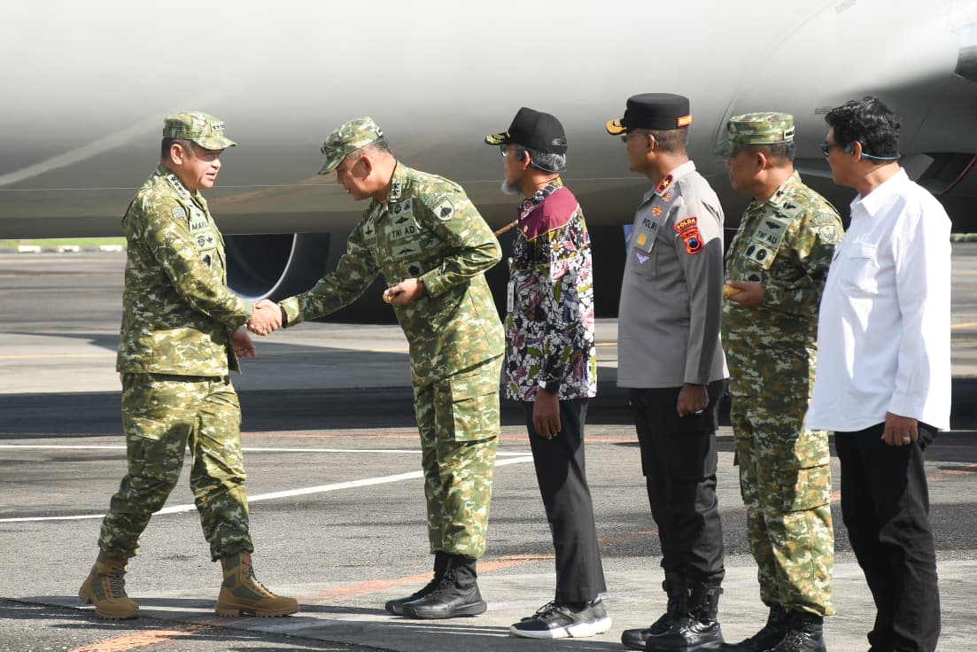 Metronusa News, Semarang – Pangdam IV/Diponegoro Mayjen TNI Achiruddin, S.E., M.Han., menyambut kunjungan kerja Menteri Pertahanan RI Jenderal TNI (Purn) Dr. Sjafrie Sjamsoeddin dan Panglima TNI Jenderal TNI Agus Subiyanto, S.E., M.Si., di Lanumad Ahmad Yani, Kamis (23/4/2026). Kedatangan rombongan tingkat pusat yang juga didampingi Kepala Staf Angkatan Darat Jenderal TNI Maruli Simanjuntak, M.Sc., ini merupakan bagian dari agenda penguatan pertahanan negara di wilayah Jawa Tengah.