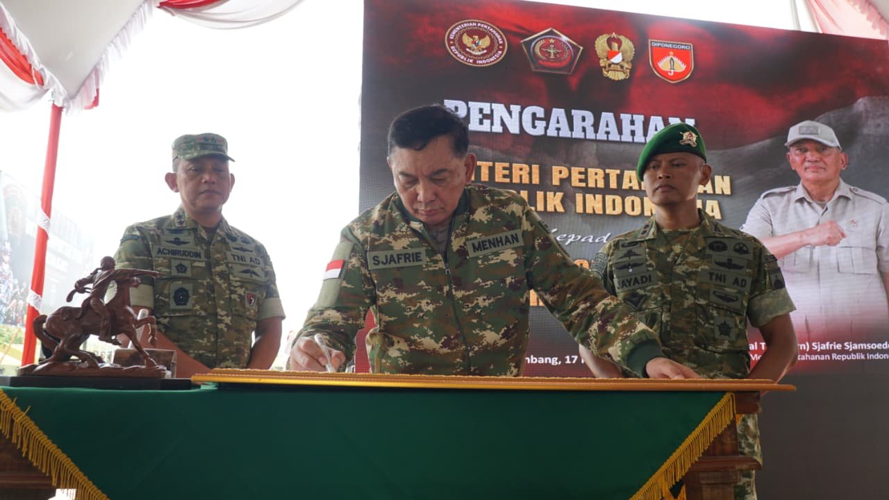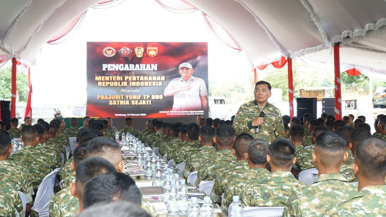 Rembang – Pangdam IV/Diponegoro Mayjen TNI Achiruddin, S.E., M.Han., mendampingi Menteri Pertahanan RI Jenderal TNI (Purn) Sjafrie Sjamsoeddin dalam kunjungan kerja ke Marshalling Area Yonif TP 888/Satria Sejati yag berada di Desa Bangunrejo, Pamotan, Rembang, Selasa (17/2/2026).