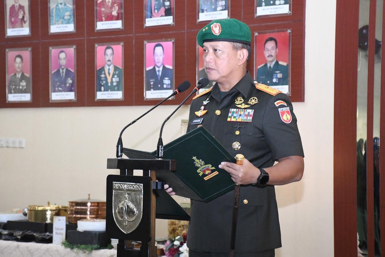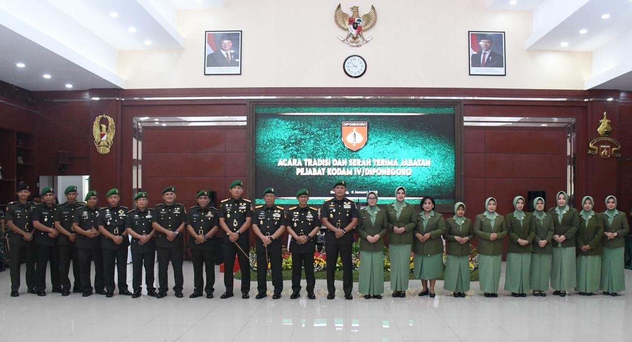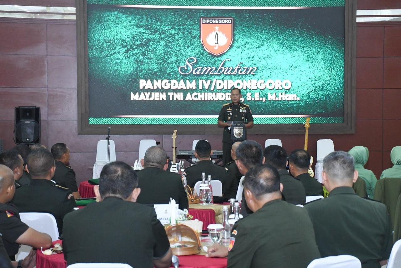 Metronusa News, emarang | Pangdam IV/Diponegoro Mayjen TNI Achiruddin, S.E., M.Han., memimpin Tradisi dan Serah Terima Jabatan (Sertijab) sejumlah pejabat Kodam IV/Diponegoro yang digelar di Aula Makodam IV/Diponegoro, Kamis (8/1/2026). Kegiatan ini merupakan bagian dari mekanisme pembinaan personel dan organisasi guna menjamin kesinambungan kepemimpinan serta meningkatkan efektivitas pelaksanaan tugas pokok satuan.