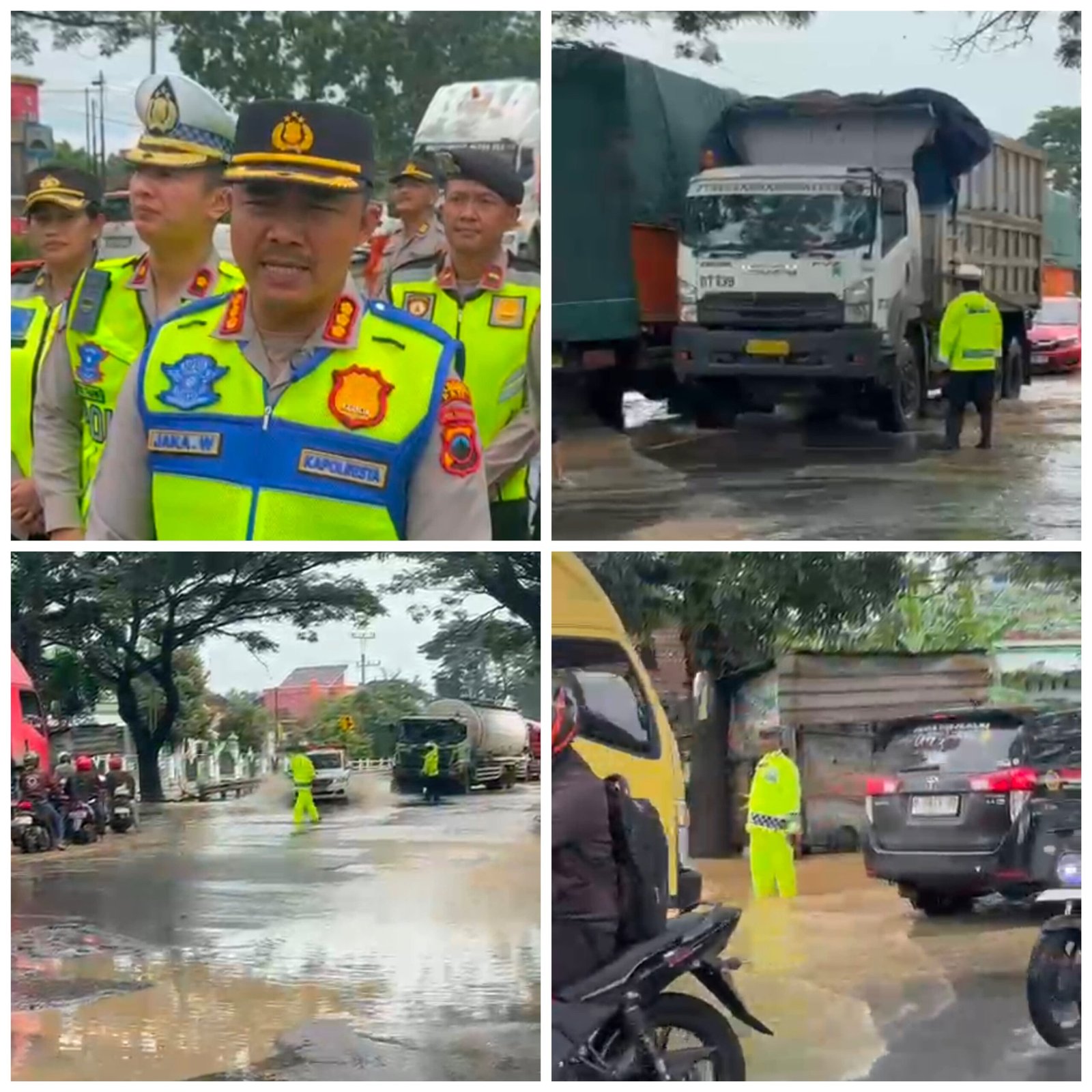 “Kami ingin memastikan langsung kondisi riil di lapangan, mulai dari genangan air, arus kendaraan, hingga kesiapan personel dalam melakukan pengaturan lalu lintas,” ujar Kombes Pol Jaka Wahyudi di sela pemantauan.