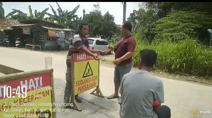 Para Petugas Pengatur Lalulintas di Proyek Rekontruksi Jalan Raya Rumpin Kampung Sawah Keluhkan Upah Mereka