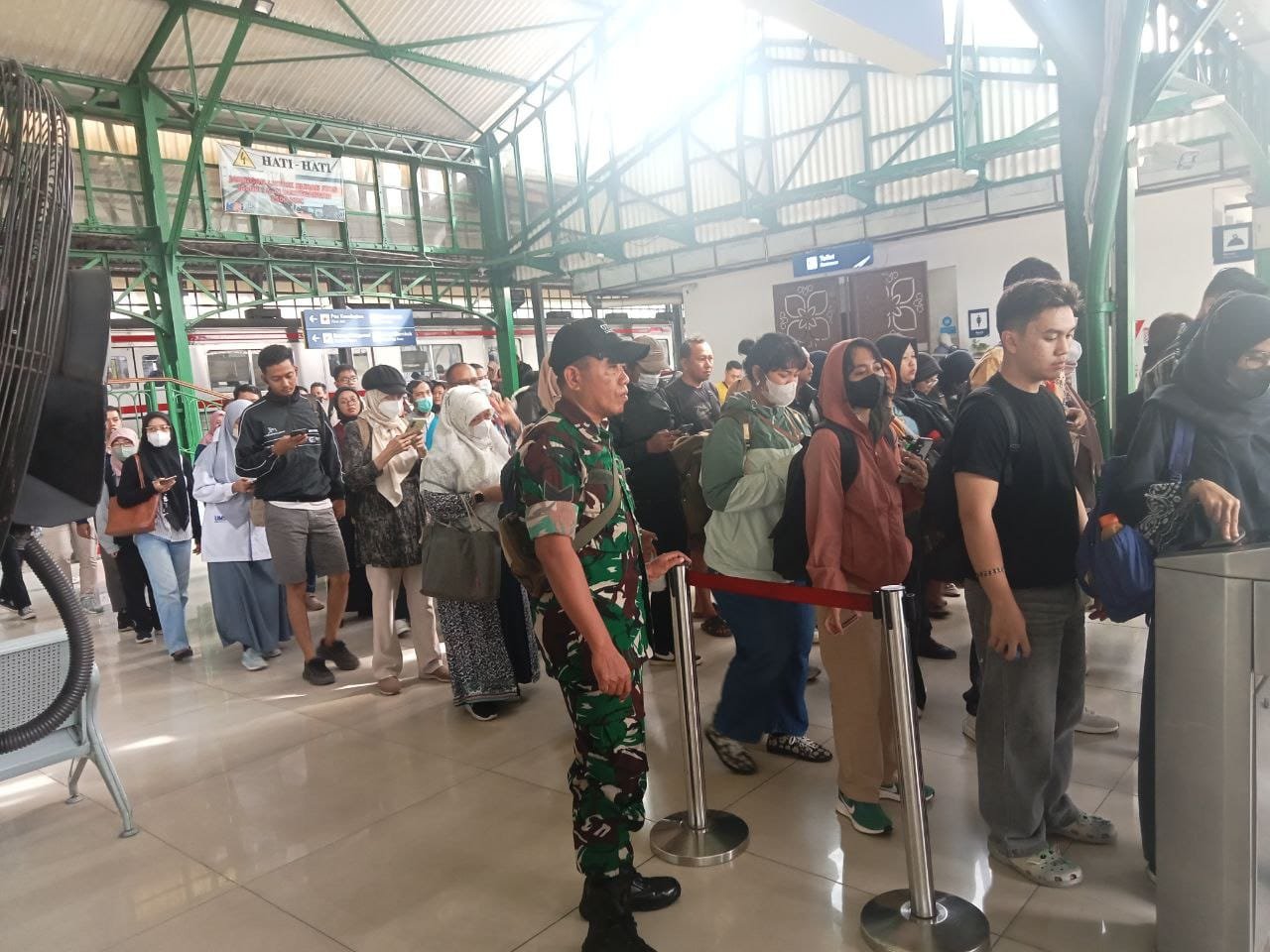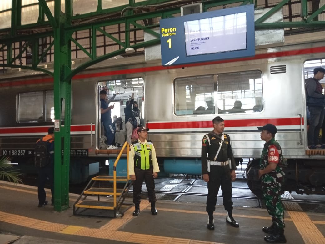 Metronusa News, Surakarta | Bertempat di Stasiun Purwosari Jl. Slamet Riyadi No. 502 Kelurahan Purwosari Kecamatan Laweyan, Babinsa Kelurahan Purwosari Koramil 01/Laweyan Kodim 0735/Surakarta Serka Murdianto melaksanakan kegiatan pemantauan dan pengamanan penumpang kereta api dalam rangka mendukung kelancaran arus balik transportasi Libur Natal dan Tahun Baru 2026, Jum’at (02/01/2026).