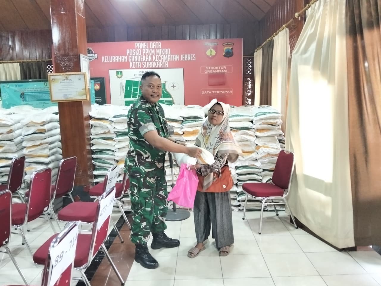 Metronusa News, Surakarta | Babinsa Kelurahan Gandekan Koramil 04/Jebres, Kodim 0735/Surakarta Sertu Teguh K melaksanakan pendampingan pendistribusian beras dan minyak goreng dari Bulog bertempat di Pendopo Citra Duta Jl.Sungai Batanghari No. 23 Kel Gandekan Kec. Jebres Kota Surakarta, Selasa (25/11/2025)