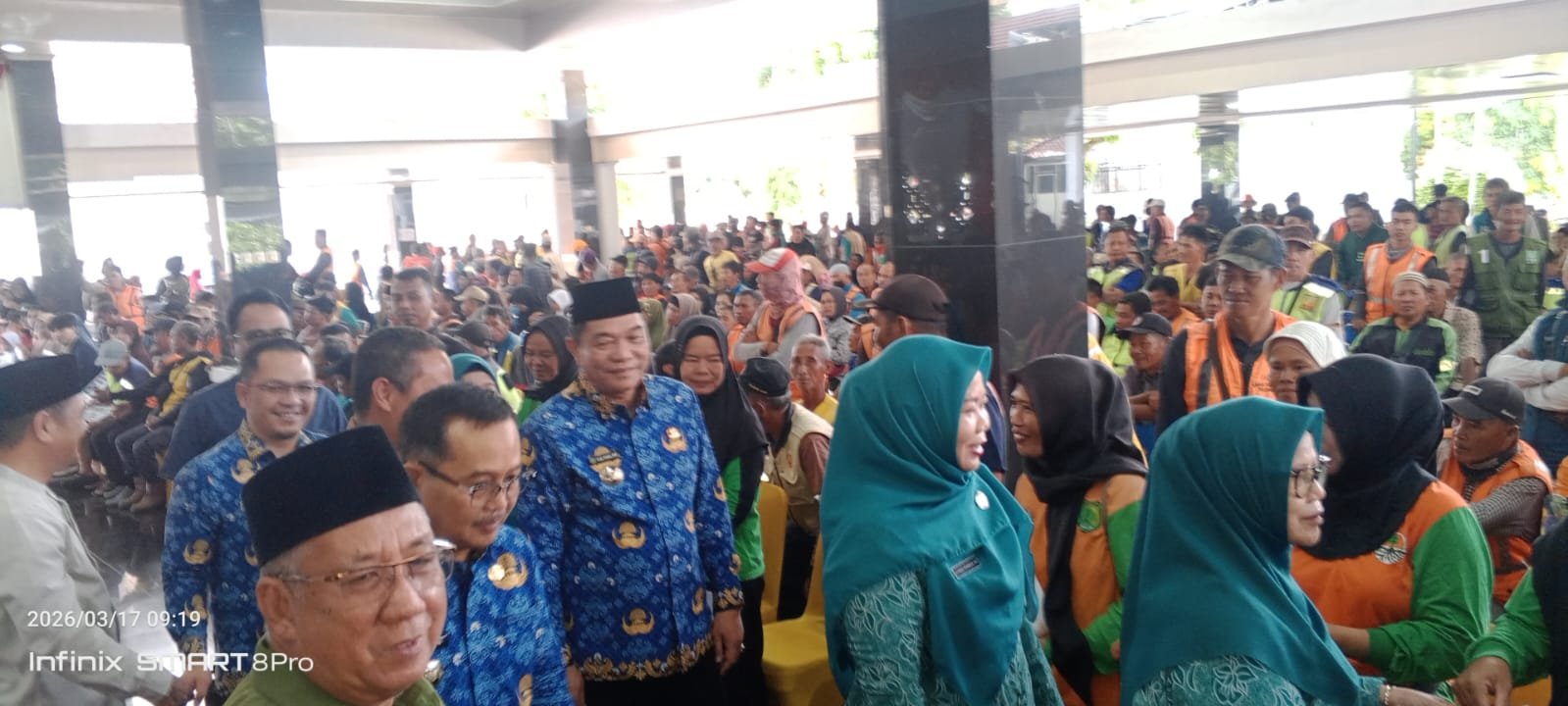 Didampingi oleh Wakil Bupati Muba Abrur Rohman Husen, para Asisten, Ketua TP PKK Muba Hj Patimah Toha, Staf Ahli TP. PKK Muba Lili Yani A Rohman dan Kepala Perangkat Daerah Kabupaten Muba. Pembagian THR tersebut dilakukan Bupati Toha secara langsung kepada ribuan pasukan oranye atau petugas kebersihan dan tukang ojek serta lainnya di Pendopoan Griya Bumi Serasan Sekate, Selasa (17/3/2026).