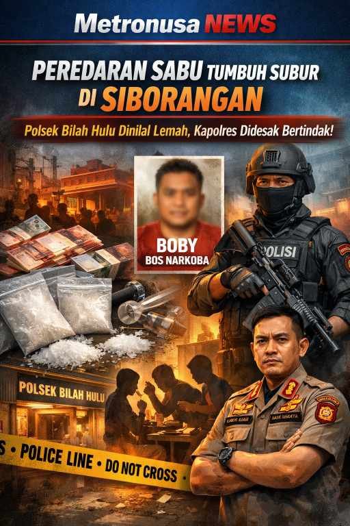 Metronusa News, Labuhanbatu | Maraknya peredaran narkotika jenis sabu di wilayah Siborangan, Desa Tanjung Siram, Kecamatan Bilah Hulu, kian meresahkan masyarakat. Kondisi ini berdampak langsung pada menurunnya kepercayaan publik terhadap kinerja aparat kepolisian setempat, khususnya Polsek Bilah Hulu, yang dinilai lemah dan nyaris tak berfungsi dalam menekan peredaran narkoba.