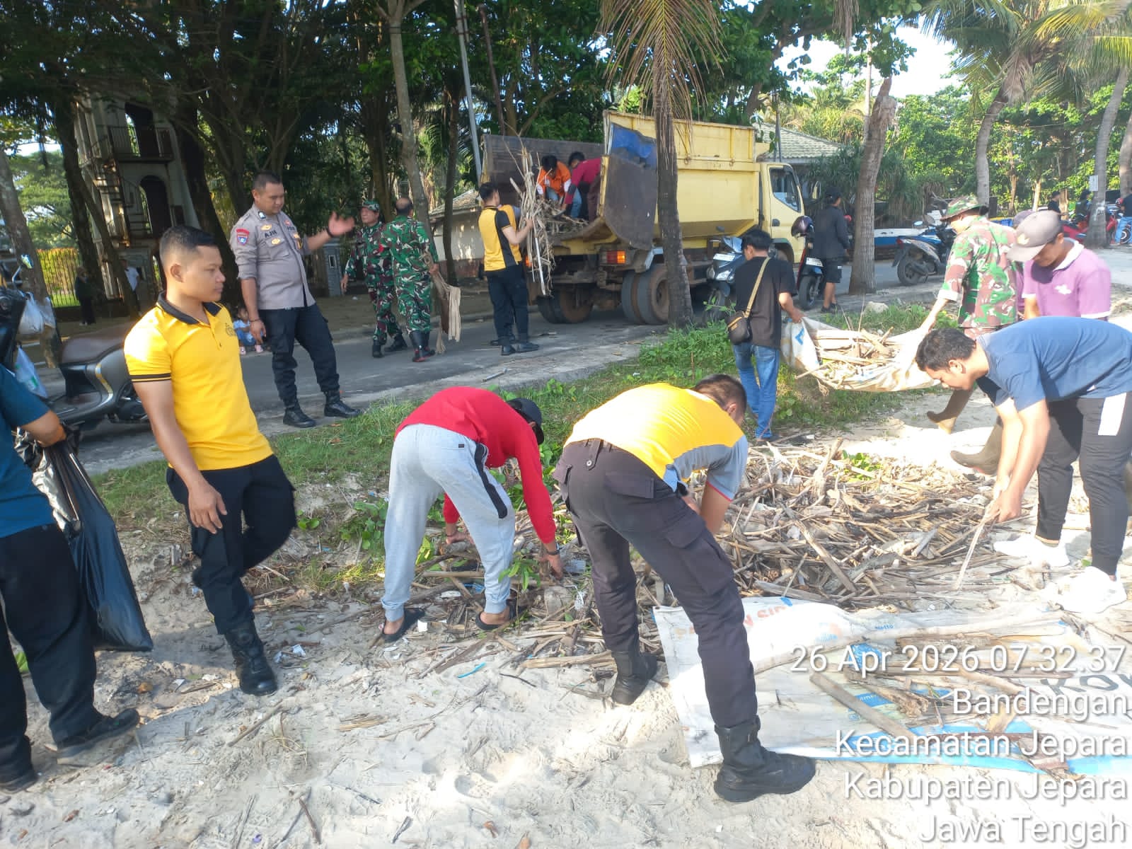 Peringati 1 Dekade Jepara Ourland Park, Polsek Mlonggo Bersama Warga Gelar Aksi Bersih Pantai Jubel