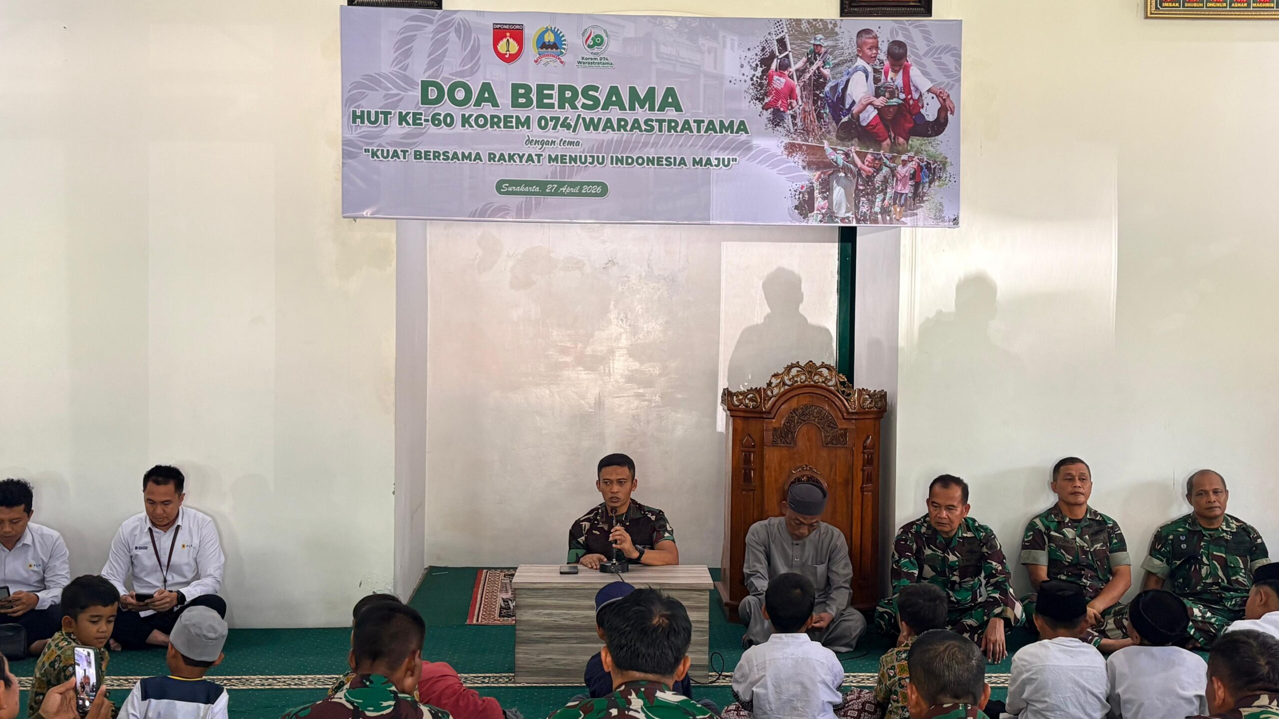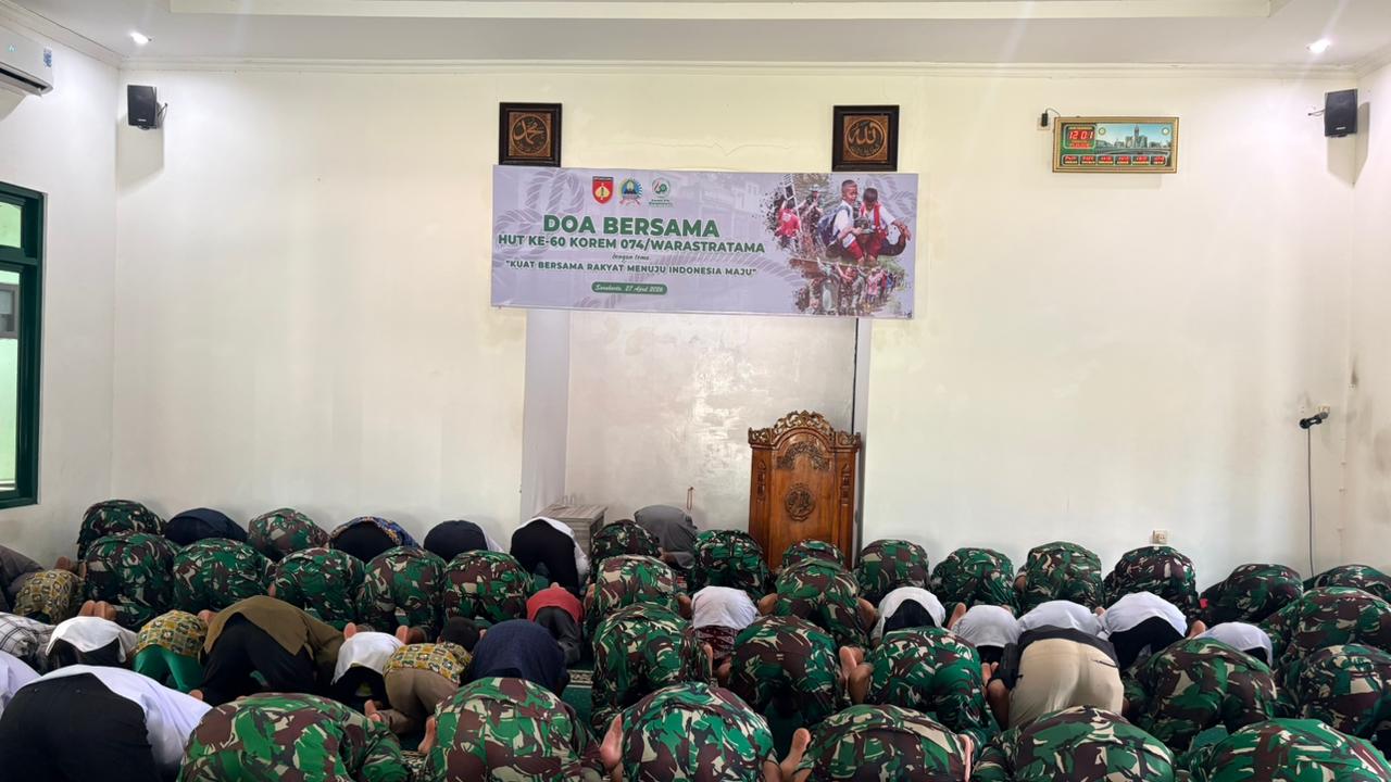 Dalam sambutannya Dandim 0735/Surakarta menegaskan perlu diketahui bersama, bahwa kegiatan doa bersama hari ini dalam rangka memperingati HUT Ke-60 Korem 074/Warastratama serta merupakan momentum untuk melakukan permohonan, harapan dan juga bisa menjadi sarana mendekatkan diri kepada Allah SWT.