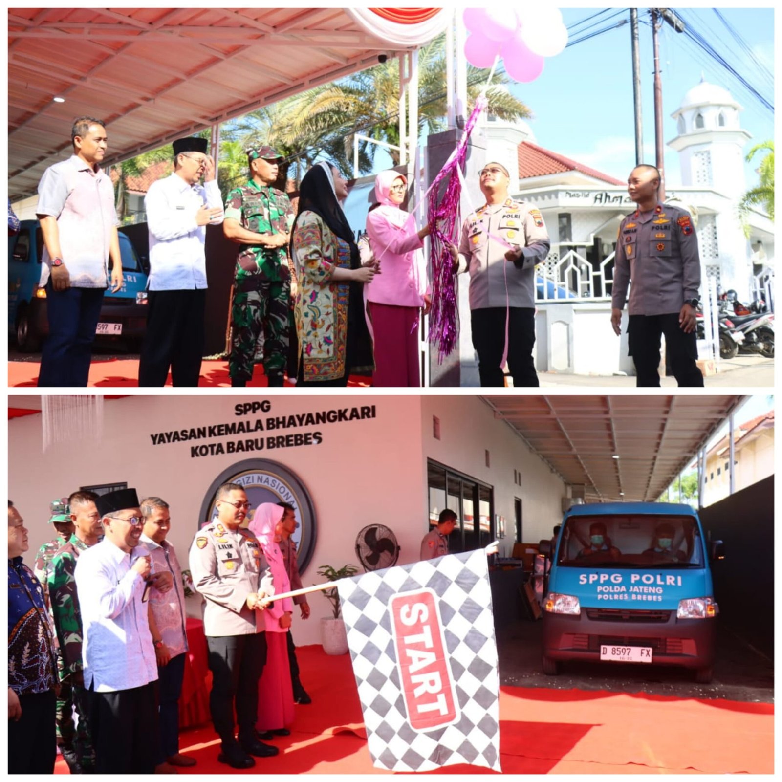 Peresmian ini ditandai dengan pengguntingan pita dan pelepasan balon oleh Bupati Brebes, Hj. Paramitha Widya Kusuma bersama Kapolres Brebes, AKBP Lilik Ardhiansyah. Acara dilanjutkan dengan pendistribusian langsung ribuan porsi Makan Bergizi Gratis (MBG) kepada para siswa di wilayah sekitar.