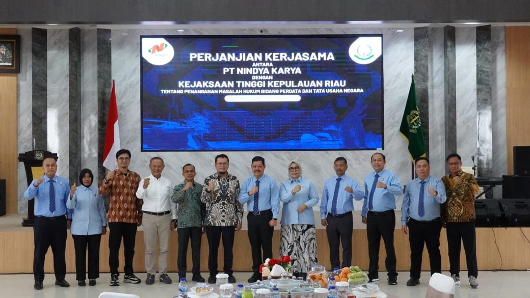 Metronusa News, Tanjungpinang – Kejaksaan Tinggi Kepulauan Riau dan PT. Nindya Karya (Persero) resmi menandatangani Perjanjian Kerja Sama tentang Penanganan Masalah Hukum di Bidang Perdata dan Tata Usaha Negara. Acara berlangsung di Aula Sasana Baharuddin Lopa Kejati Kepri, dihadiri jajaran pejabat kedua instansi, Kamis (23/10/2025).