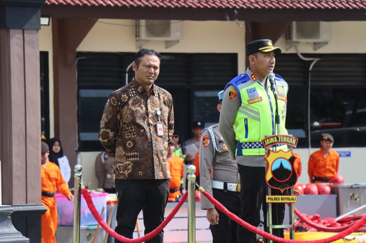 Kegiatan yang berlangsung mulai pukul 08.00 WIB ini dipimpin langsung oleh Kapolres Boyolali AKBP Rosyid Hartanto, serta dihadiri oleh Bupati Boyolali Agus Irawan, perwakilan Dandim 0724/Boyolali, unsur BPBD, Satpol PP, Dinas Perhubungan, Dinas Kesehatan, PMI, dan perwakilan personel dari berbagai satuan.