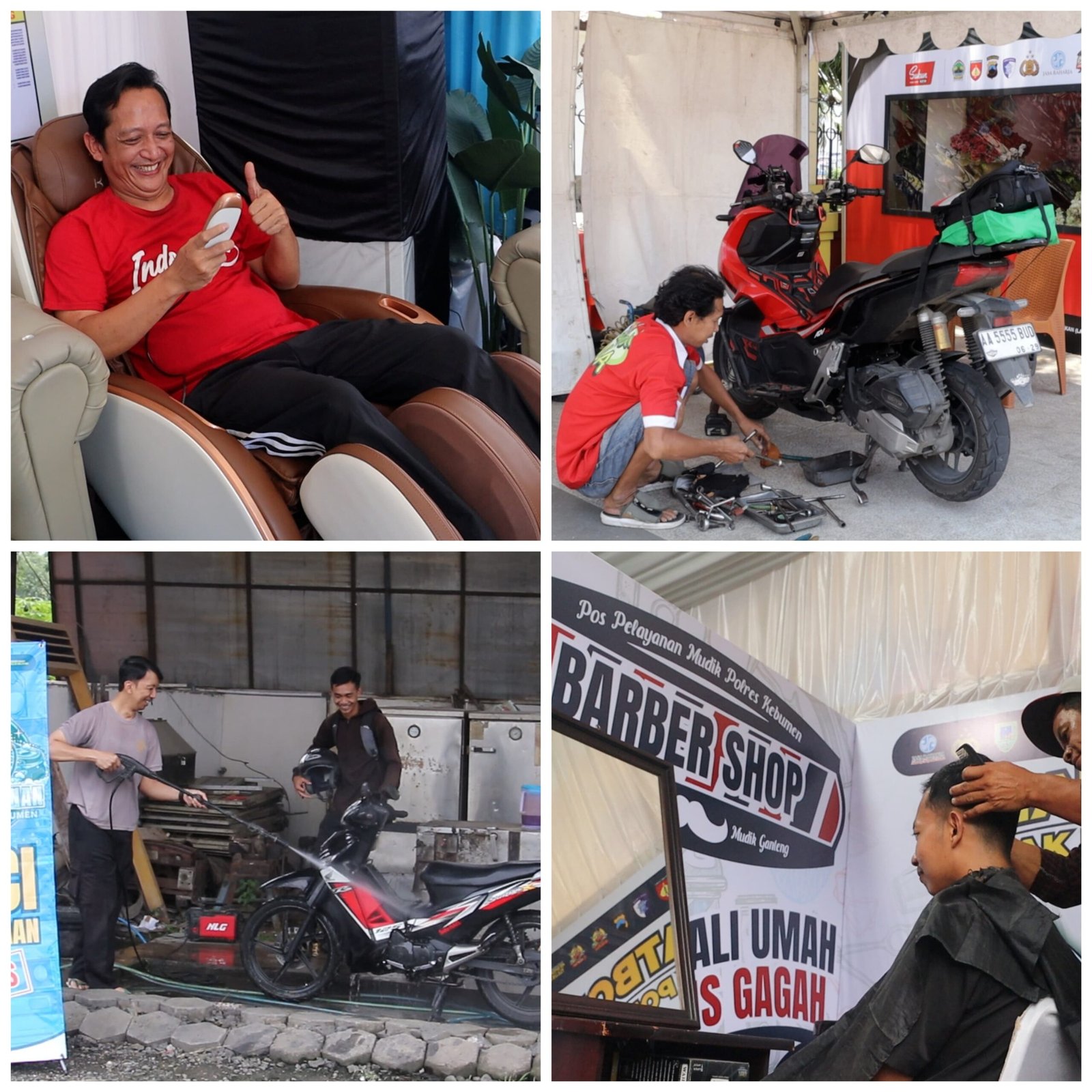 Sementara itu, di Pos Pelayanan Karanganyar, fasilitasnya nggak kalah keren. Pemudik bisa nikmatin pijat tradisional gratis buat ngilangin capek, bahkan ada barber shop gratis buat yang mau tampil fresh lagi.