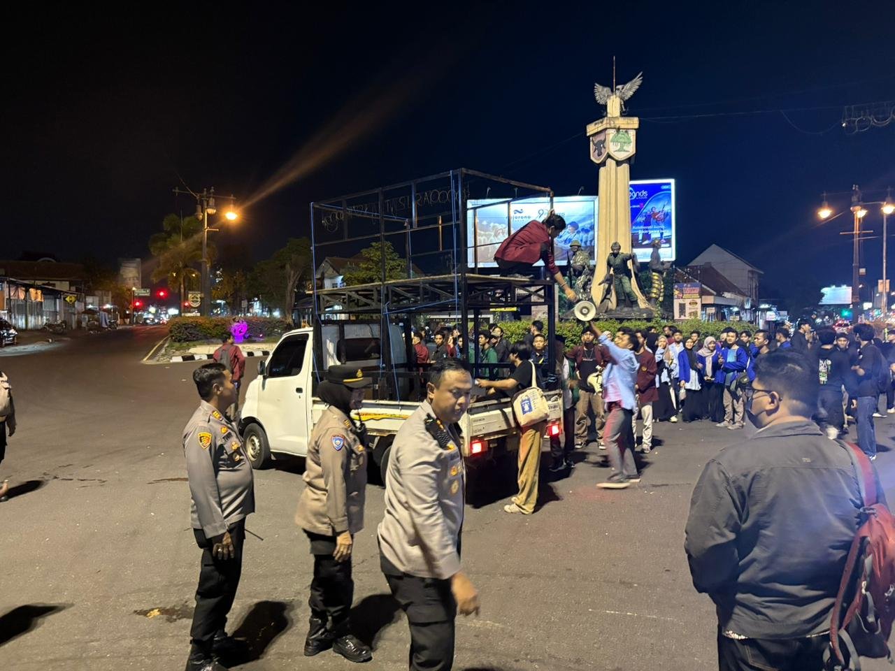 “Aksi unjuk rasa di Tugu Kartasura telah selesai dilaksanakan dalam keadaan aman kondusif. Selanjutnya kami melaksanakan apel konsolidasi,” ujar Kapolres.