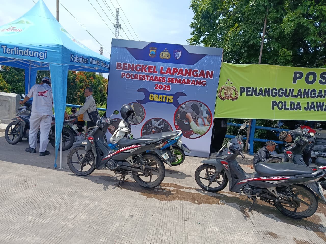 > “Kami menyiagakan bengkel lapangan agar masyarakat yang kendaraannya mogok bisa segera terbantu. Ini bagian dari komitmen Polrestabes Semarang memberikan pelayanan humanis di tengah situasi bencana,” ujar Kompol Agung.