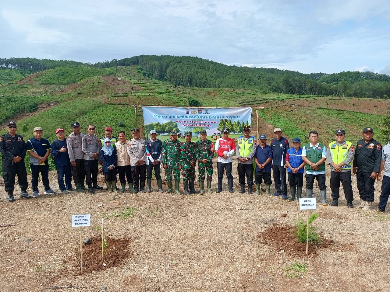 Metronusa News, Sidareja, Cilacap | Pada hari Jum’at tanggal 26 Desember 2025 sekitar pukul 08.30 Wib disela sela kesibukannya anggota Polri khususnya Polsek Sidareja dalam Pengamanan Natal dan tahun Baru masih memikirkan untuk keselamatan masyarakat dan kepedulian terhadap alam yaitu dengan Memotori/mengajak Forkompincam Sidareja untuk melakukan gerakan tanam pohon di Lahan Kritis.