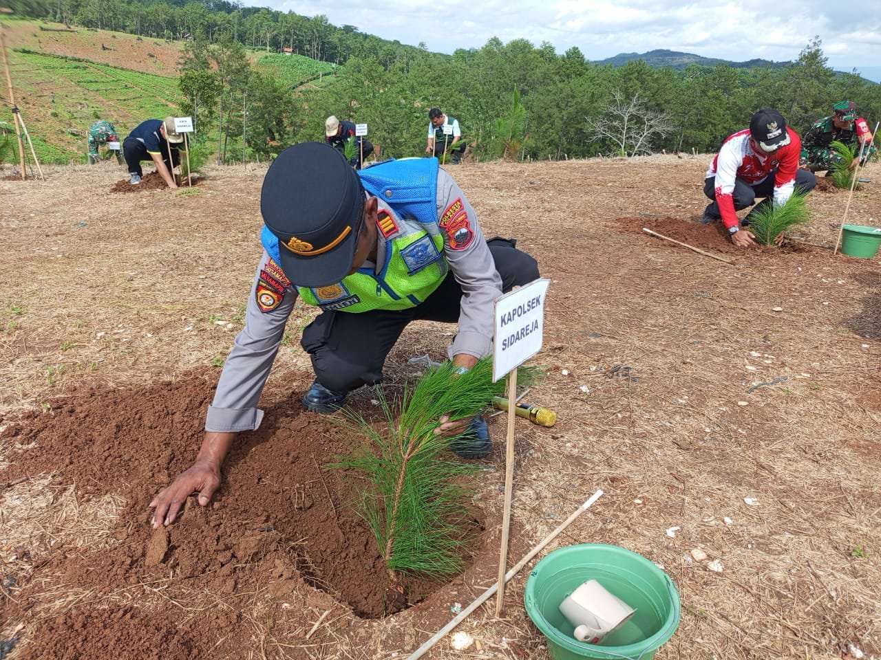 Dalam kegiatan tersebut Polsek Sidareja dan jajaran Forkompincam Sidareja melakukan penanaman pohon kayu keras sebanyak 1000 pohon, yang di tanam di lahan kritis tepatnya di bukit Sempayak ikut Dusun Karangbolang RT. 01/01 Desa Penyarang kecamatan Sidareja kabupaten Cilacap.