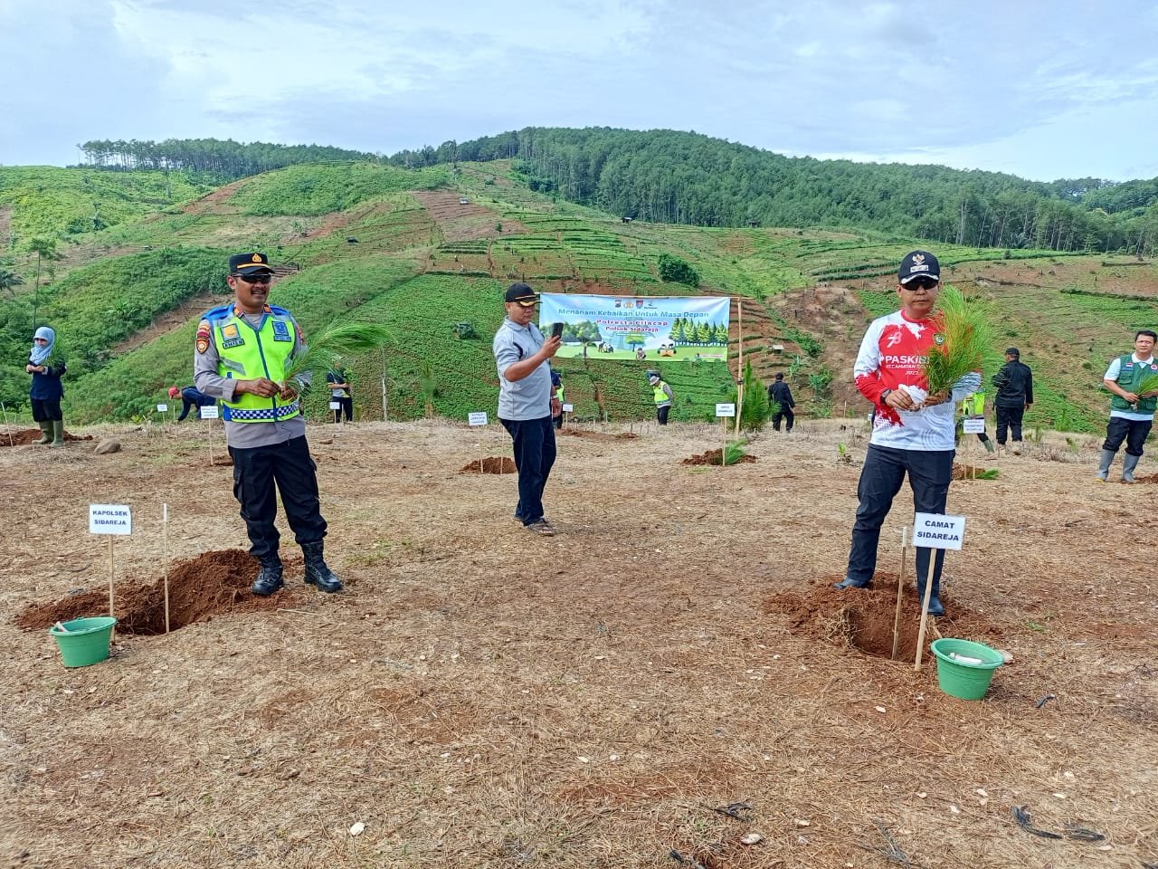 Lebih lanjut camat Sidareja juga mengucapkan terimakasih kesemua pihak yang hadir pada acara ini, semoga dengan giat ini bisa menguatkan untuk lahan kritis agar tidak terjadi longsor dan untuk para kades agar disampaikan ke warga nya agar juga ikut menanam pohon di lingkungan masing – masing.”pungkasnya.