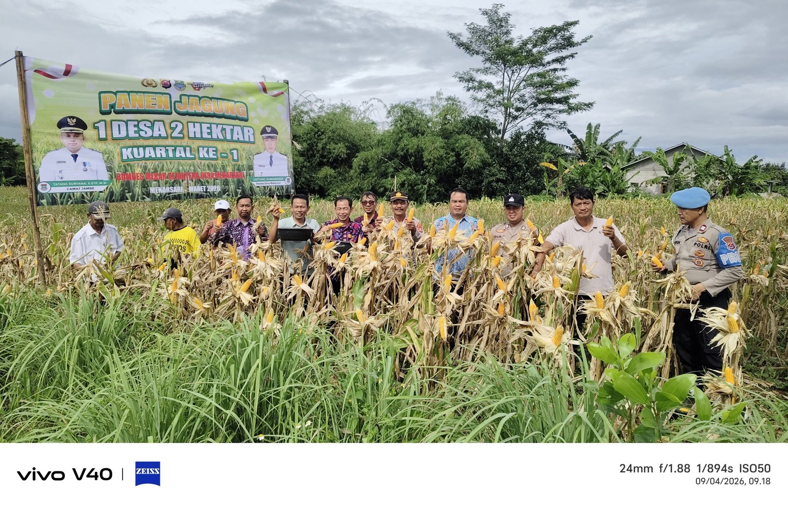 Kegiatan panen tersebut dilaksanakan pada hari Kamis, 09 April 2026, bertempat di Kampung Jantungeun RT 04/02, Desa Mekarsari, Kecamatan Jambe. Acara ini dipimpin langsung oleh Kanit Binmas Polsek Tigaraksa, IPTU Sularjo, yang turut terjun langsung ke lokasi bersama para tamu undangan dan masyarakat setempat.