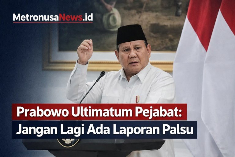 MetronusaNews.id | Jakarta – Presiden Prabowo Subianto memberikan peringatan keras kepada seluruh jajaran pejabat pemerintah agar tidak lagi menyampaikan laporan yang dimanipulasi atau dibuat hanya untuk menyenangkan pimpinan.