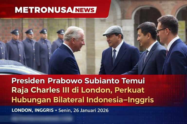 Metronusa News, London, Inggris — Presiden Republik Indonesia Prabowo Subianto melakukan pertemuan dengan Raja Charles III di London, Inggris, pada Senin, 26 Januari 2026, dalam rangkaian kunjungan kenegaraan.
