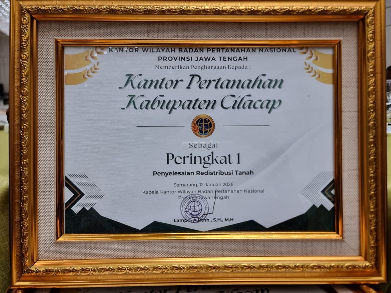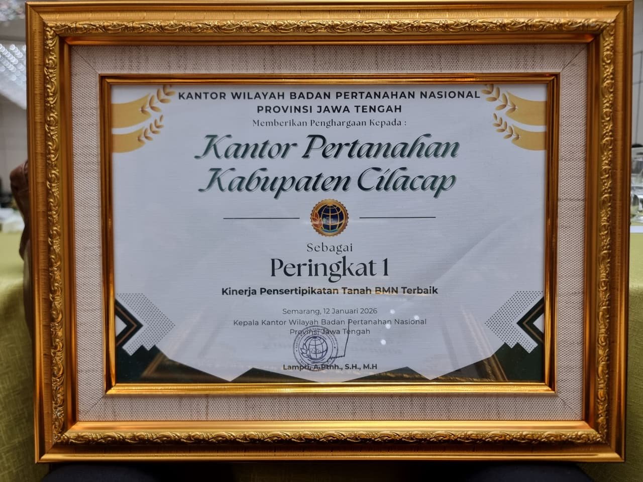 Penghargaan ini menjadi bukti nyata komitmen dan kerja keras seluruh jajaran Kantor Pertanahan Kabupaten Cilacap dalam mendukung program strategis nasional di bidang agraria dan tata ruang.