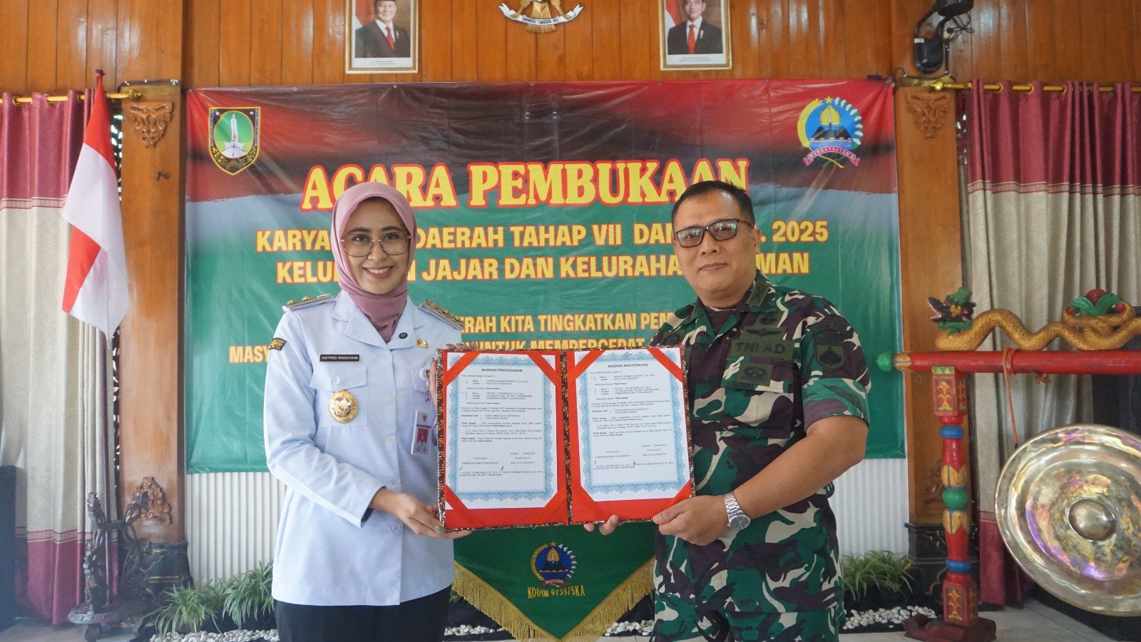 Metronusa News, Surakarta | Bertempat di Pendopo Kelurahan Jajar Jl. Basuki Rahmat Kel. Jajar Kec. Laweyan telah dilaksanakan Pembukaan Karya Bakti Daerah (KBD) Tahap VII dan VIII Kelurahan Jajar dan Kelurahan Kauman Kota Surakarta Tahun 2025 dengan tema “Karya Bakti Daerah kita tingkatkan pemberdayaan masyarakat dan lingkungan untuk mempercepat akselerasi pembangunan di daerah guna memperkokoh persatuan dan kesatuan menuju terwujudnya ketahanan wilayah yang tangguh” yang diselenggarakan oleh Kodim 0735 Surakarta kerjasama dengan pemerintah kota Surakarta, Rabu (15/10/2025).