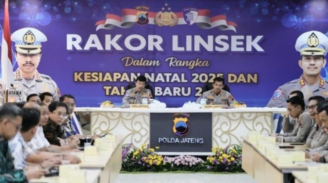 Metronusa News, Kota Semarang l Polda Jawa Tengah menggelar rapat koordinasi lintas sektoral guna mempersiapkan pengamanan Natal 2025 dan Tahun Baru 2026 (Nataru) melalui Operasi Lilin Candi 2025. Rakor digelar di Aula Lantai 2 Mapolda Jateng, Semarang, Jumat (5/12/2025), dipimpin Direktur Lalu Lintas Polda Jateng Kombes Pratama Adhyasastra.