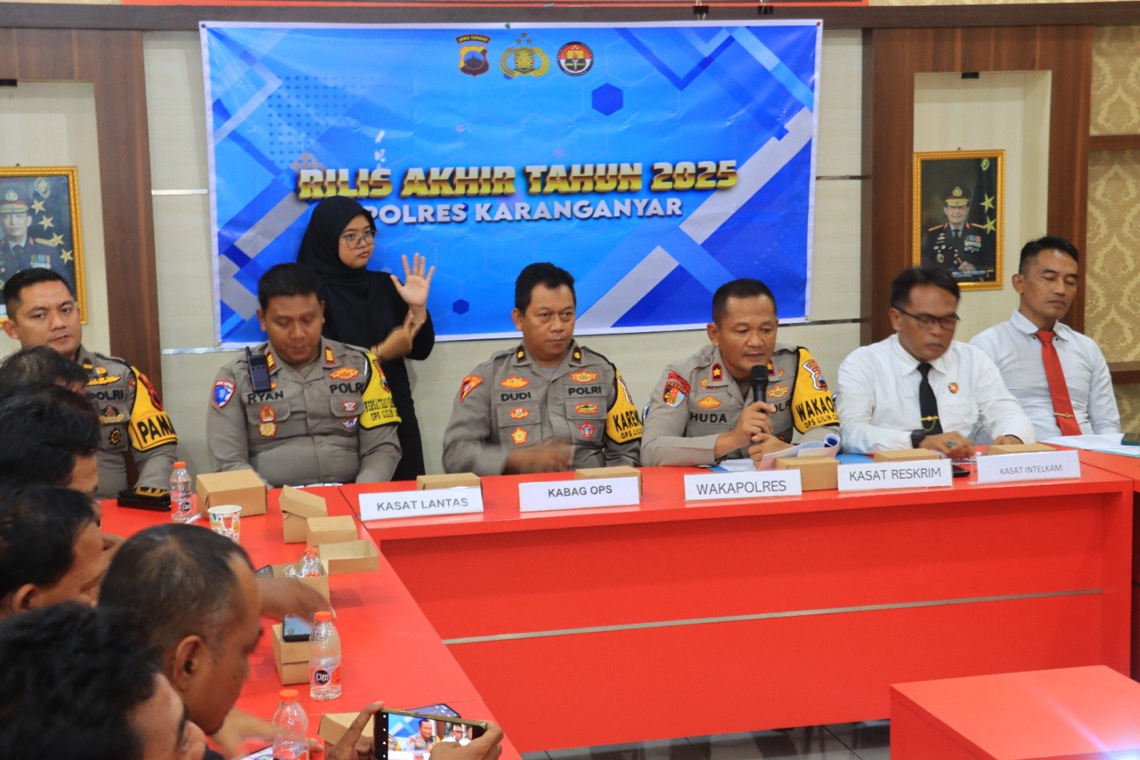 Di bidang penegakan hukum, Kasat Reskrim Polres Karanganyar AKP Wikan Sri Kadiyono, S.H., M.H. menjelaskan bahwa sepanjang tahun 2025, Sat Reskrim telah menyelesaikan 119 perkara hingga tahap P21 dan pelimpahan ke kejaksaan. Ia juga mengingatkan masyarakat untuk tetap waspada terhadap potensi kejahatan.