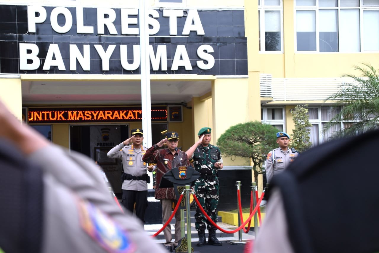 Metronusa News, Banyumas | Dalam upaya memastikan momen pergantian tahun baru berjalan dengan rasa aman, nyaman dan penuh ketenangan bagi warganya, Bupati Banyumas Sadewo Tri Lastiono didampingi Kapolresta Banyumas Kombes Pol Ari Wibowo dan Komandan Kodim 0701 Banyumas Letkol Inf Edward Samosir, memimpin apel kesiapan pelayanan masyarakat menyambut tahun baru 2026 yang digelar pada Rabu (31/12/25) sore bertempat di Halaman Mapolresta Banyumas. Hadir dalam apel tersebut, para pimpinan dan personel pengamanan dari Polresta Banyumas, Kodim 0701 Banyumas, Denpom IV/1 Purwokerto, Batalyon D Pelopor Satbrimobda Jawa Tengah, Satpol PP Kabupaten Banyumas dan Dinas Perhubungan Kabupaten Banyumas.