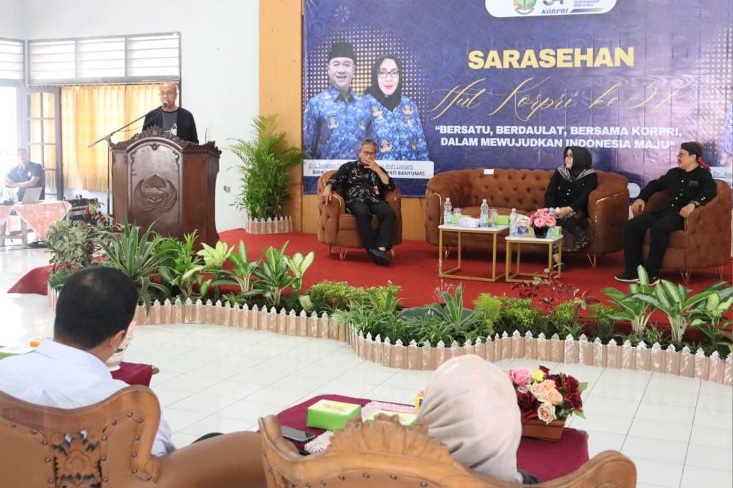 Metronusa News, Banyumas | Peringati Hari Ulang Tahun ke-54 Korps Pegawai Republik Indonesia (KORPRI), Dewan Pengurus KORPRI Kabupaten Banyumas menggelar Sarasehan dengan tema “Bersatu, Berdaulat, bersama KORPRI, dalam Mewujudkan Indonesia Maju. Kegiatan dilaksanakan di Gedung Korpri pada Rabu (20/112025). Pada kesempatan ini Bupati Banyumas, Sadewo Tri Lastiono menyampaikan pesan penting mengenai penguatan integritas, peningkatan kualitas pelayanan publik, serta peran strategis KORPRI dalam mendukung tata kelola pemerintahan yang modern dan responsif.