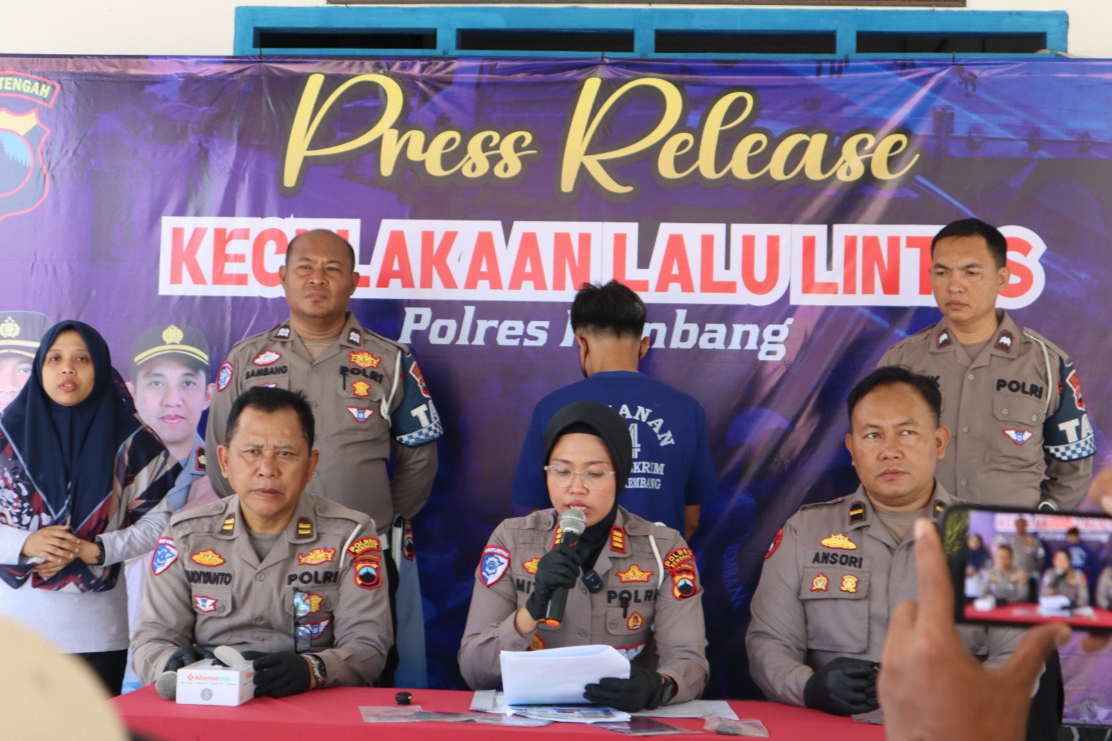 Dalam konferensi persnya, AKP Mitha menjelaskan bahwa kasus ini berawal dari kecelakaan lalu lintas yang terjadi pada Jumat (3/10/2025) sekitar pukul 07.45 WIB di ruas Jalan Nasional turut tanah Desa Dorokandang, Kecamatan Lasem, Kabupaten Rembang. Kecelakaan tersebut melibatkan kendaraan Truk Tronton Box Mercedes Benz B-9958-PEU dengan sepeda motor Tajima Sunny X K-6914-VD.