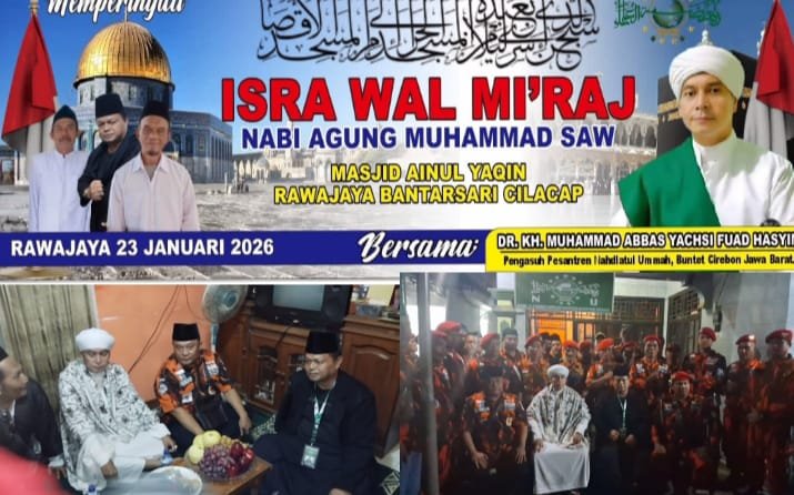 Metronusa News, Cilacap | Gema selawat dan pesan damai membahana di Dusun Sitinggil, Desa Rawajaya, Kecamatan Bantarsari. Ratusan warga tumpah ruah di Masjid Ainul Yaqin dalam peringatan Isra Wal Mi’raj Nabi Muhammad SAW yang berlangsung khidmat pada Jumat (23/1/2026) malam.