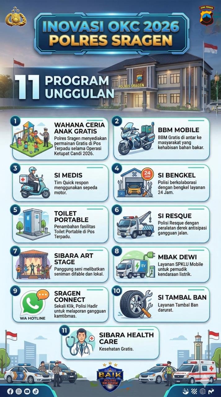 Metronusa News, SRAGEN, Jawa Tengah l Kesiapan menghadapi arus mudik Lebaran dalam rangka Operasi Ketupat Candi 2026, Satuan Lalu Lintas Polres Sragen bakal menyiapkan berbagai terobosan pelayanan bagi masyarakat. Total ada delapan inovasi layanan yang disiapkan untuk memastikan perjalanan pemudik aman, nyaman, dan mendapatkan pelayanan cepat saat mengalami kendala di jalan.