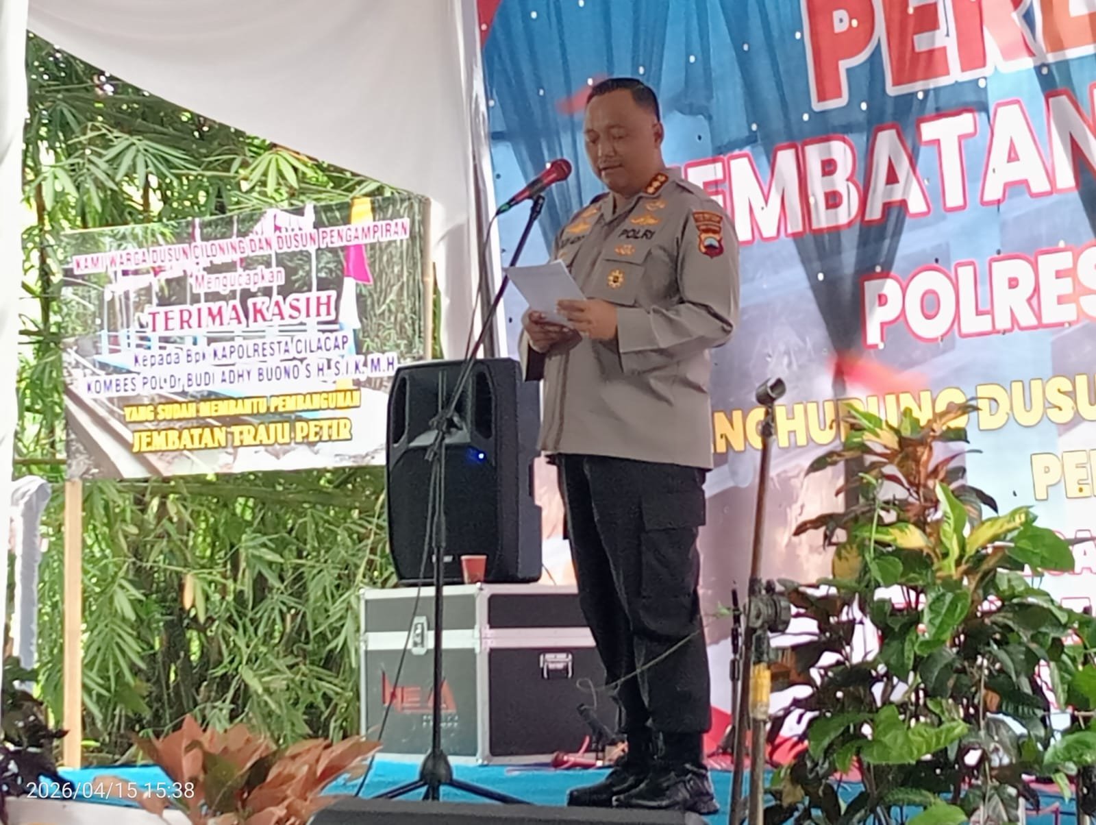 Pesan Kapolresta: Jaga dan Rawat Bersama Dalam sambutannya, Kapolresta Cilacap menitipkan pesan penting mengenai keberlangsungan bangunan tersebut. Beliau meminta agar rasa memiliki masyarakat terhadap jembatan ini diwujudkan melalui tindakan nyata dalam pemeliharaan.