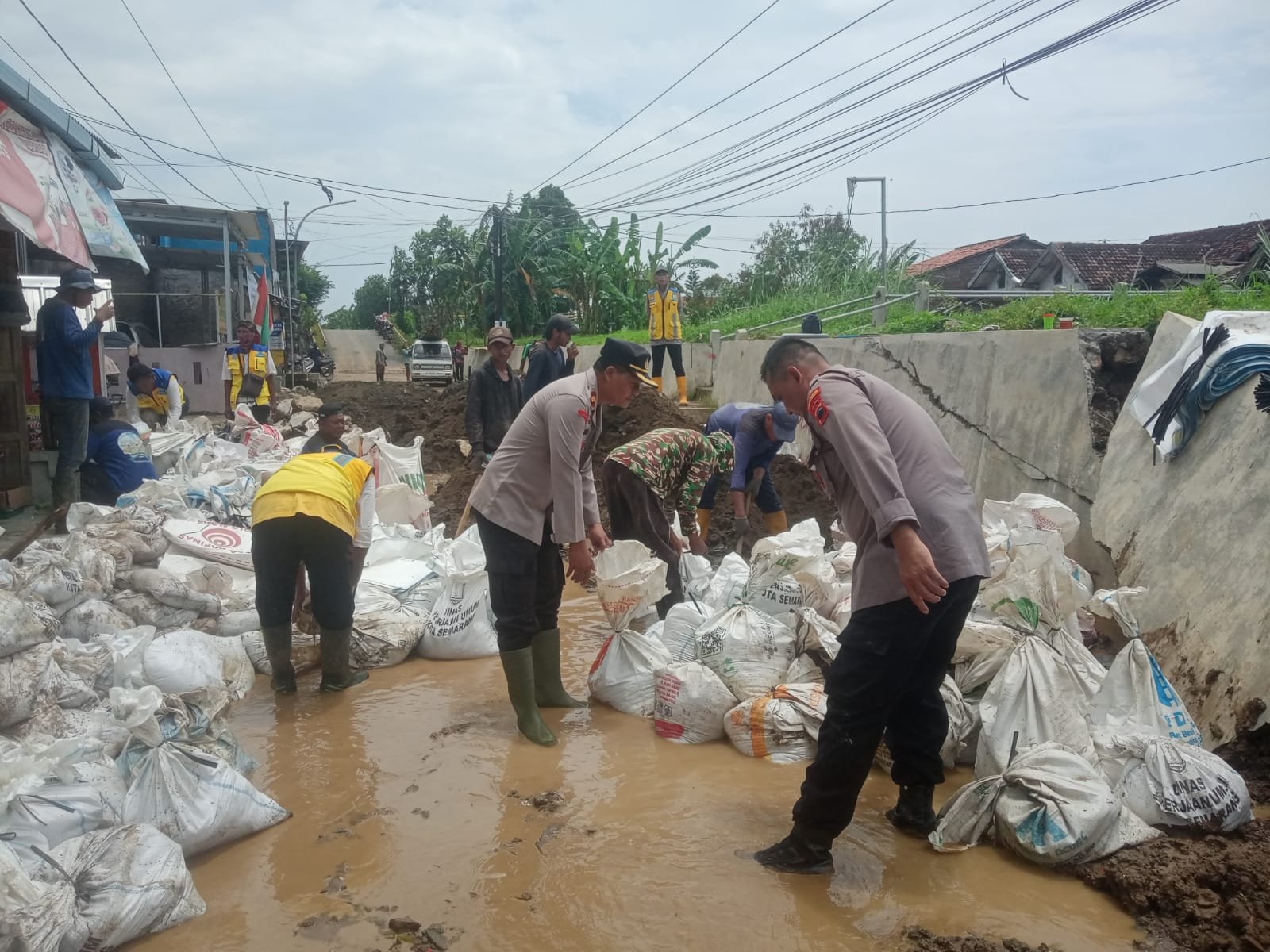 Metronusa News, SEMARANG — Aparat gabungan bersama unsur Pemerintah Kota Semarang melaksanakan kerja bhakti penanganan darurat pasca banjir akibat jebolnya tanggul sungai sepanjang kurang lebih 25 meter di wilayah RT 01 RW 01 Kelurahan Mangkang Kulon, Kecamatan Tugu, Kota Semarang, Rabu (4/3/2026) mulai pukul 08.00 WIB hingga selesai. Kegiatan tersebut merupakan sebagai bentuk respons cepat atas dampak banjir yang merendam kawasan pemukiman warga.
