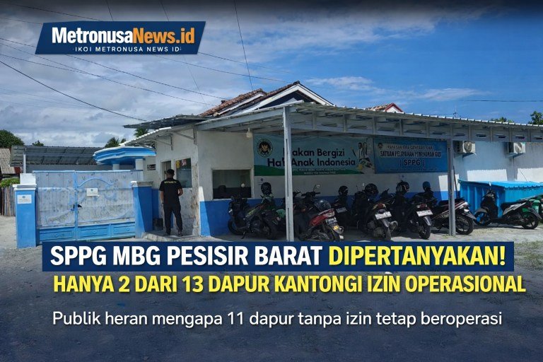 MetronusaNews.id | Pesisir Barat – Kepala Bidang PMP Kabupaten Pesisir Barat mengungkapkan bahwa dari total 13 dapur Satuan Pelayanan Pemenuhan Gizi (SPPG) yang beroperasi di wilayah tersebut, baru dua dapur yang memiliki izin sesuai ketentuan. Hal ini disampaikan pada Senin (13/04/2026).