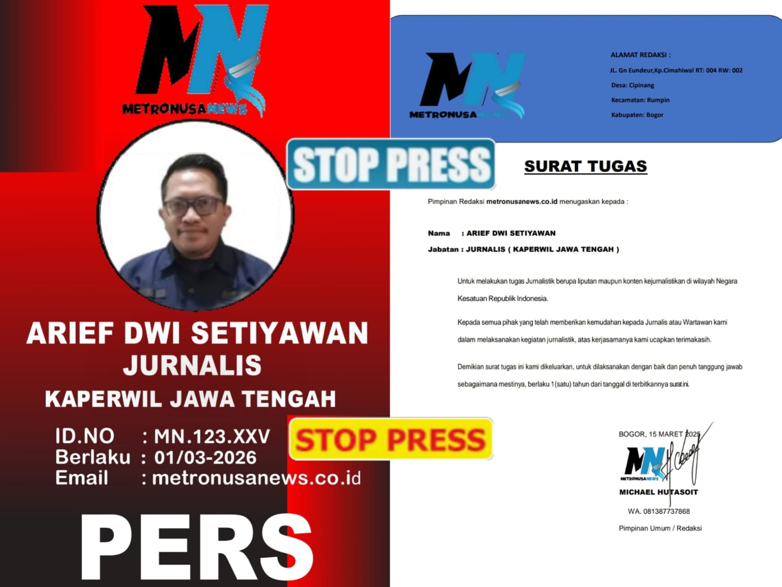 Pimpinan Redaksi Media METRONUSA NEWS