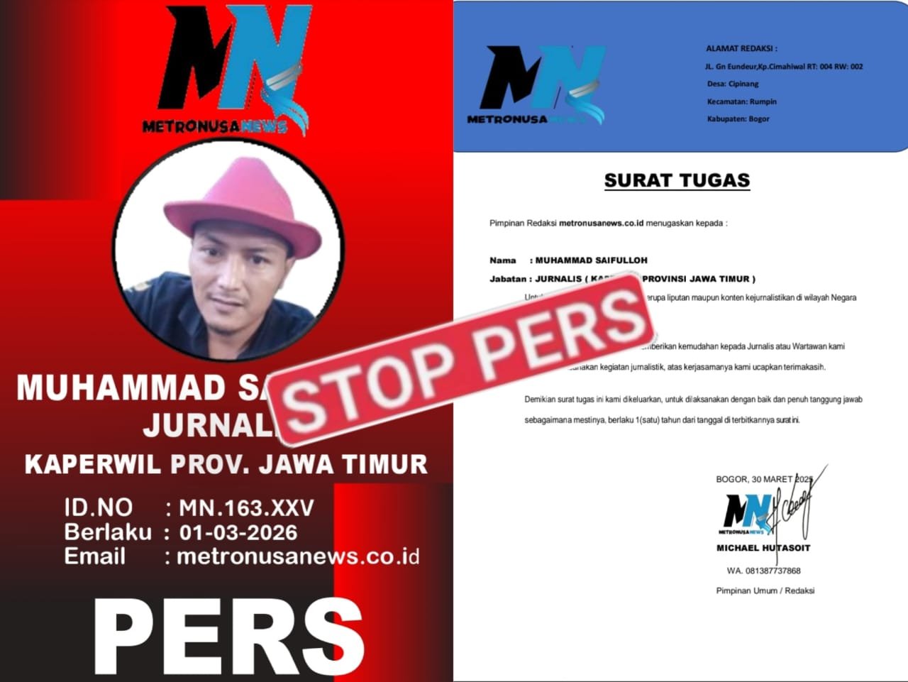 Bogor 28 Januari 2026. Pimpinan Redaksi Media METRONUSA NEWS.