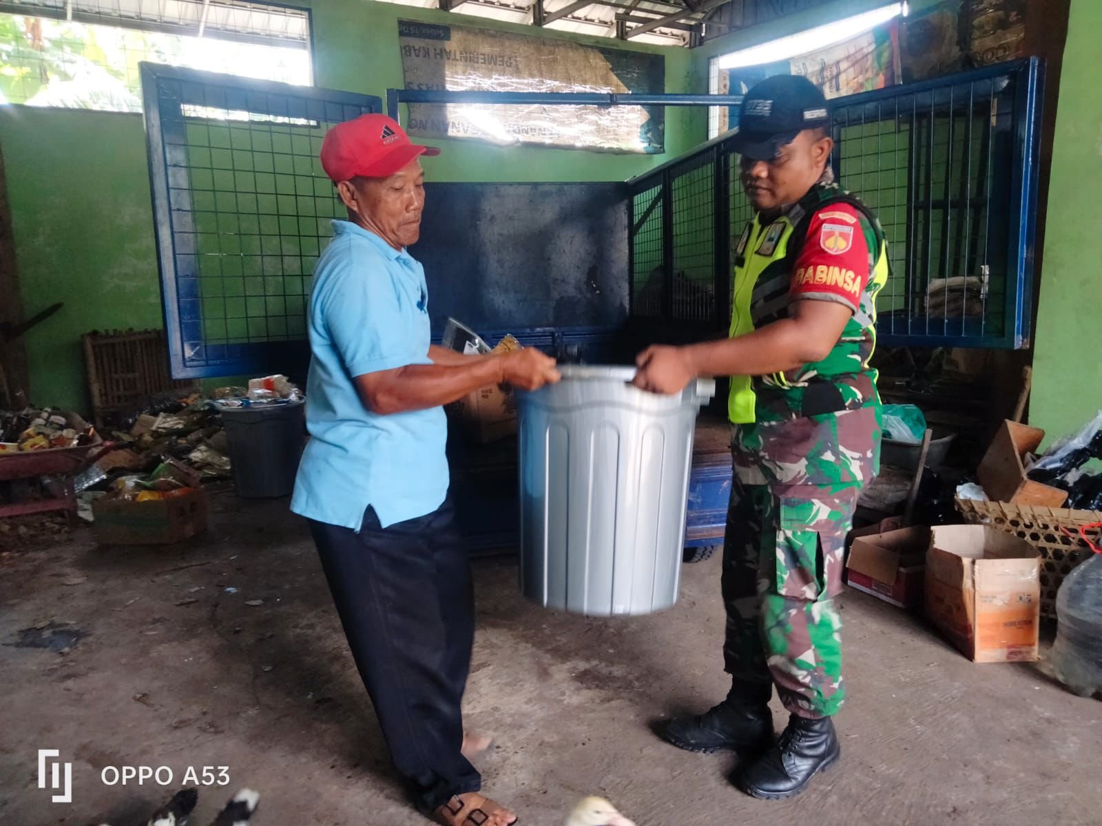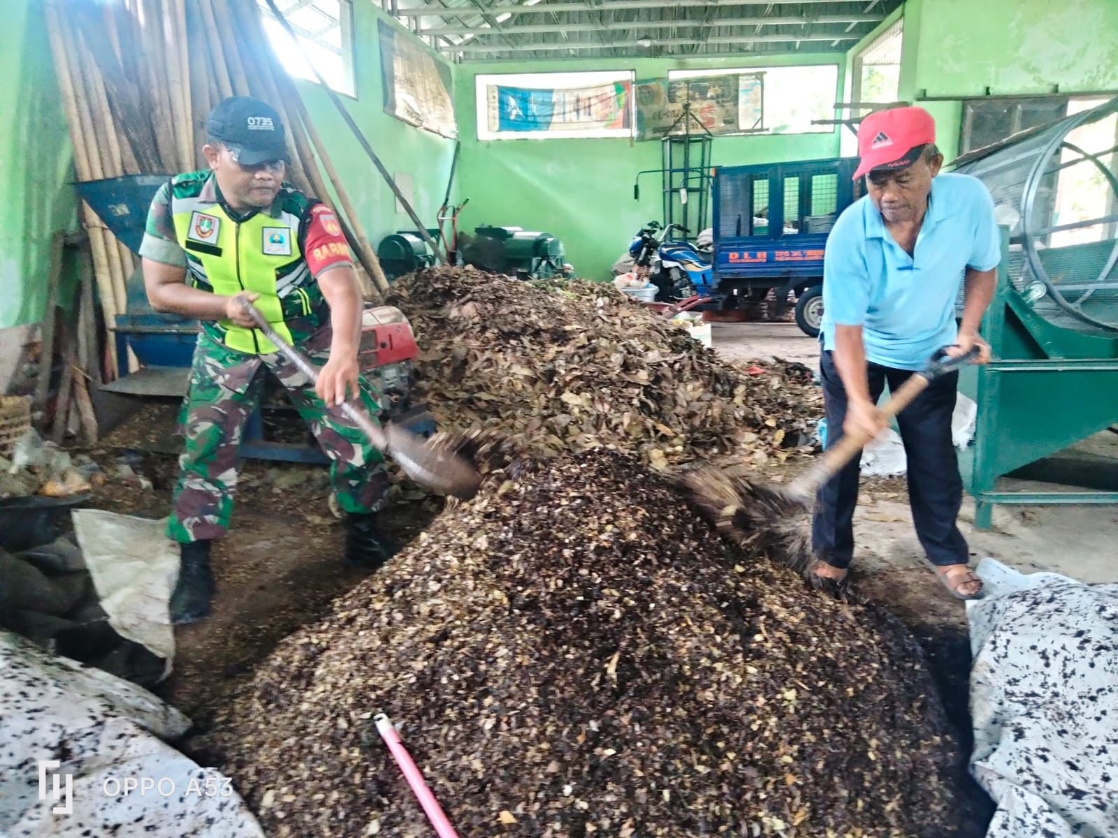 Metronusa News, Surakarta | Tempat Pengolahan Sampah Berbasis Reduce, Reuse, dan Recycle ( TPS3R ) Mojo, desa Jebres terus mendapat perhatian dari Bati Tuud Koramil 04/Jebres Peltu Edi Yanto dan Babinsa Jebres Serda Winarno.
