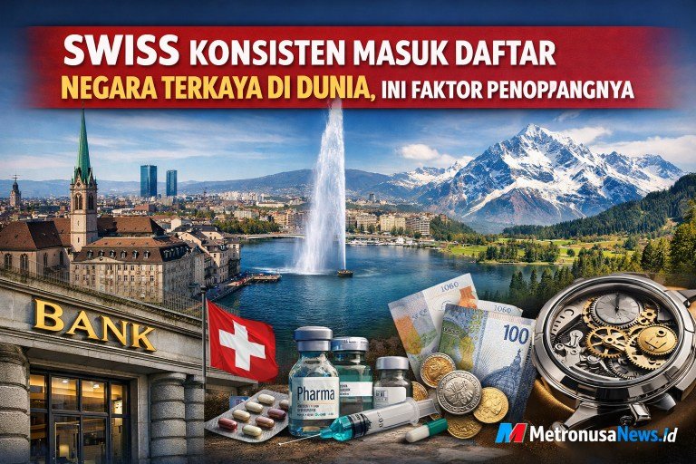 Metronusa News | Internasional – Swiss Confederation atau Swiss kembali menjadi sorotan sebagai salah satu negara terkaya di dunia. Predikat tersebut didasarkan pada tingginya Produk Domestik Bruto (PDB) per kapita, stabilitas ekonomi, serta kekuatan sektor keuangan dan industrinya.